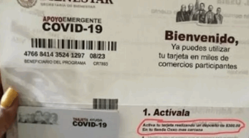 En redes sociales circuló una fotografía donde se puede ver una tarjeta que supuestamente es para el apoyo de los programas del Bienestar de “apoyo emergente Covid-19”, donde piden que los beneficiarios depositaren cierta cantidad para activarla.