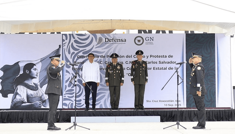 En las instalaciones de la Guardia Nacional ubicadas en el municipio de Santa Cruz Xoxocotlán, el General Brigadier de Guardia Nacional de Estado Mayor asumió esta responsabilidad y rindió protesta de bandera.
