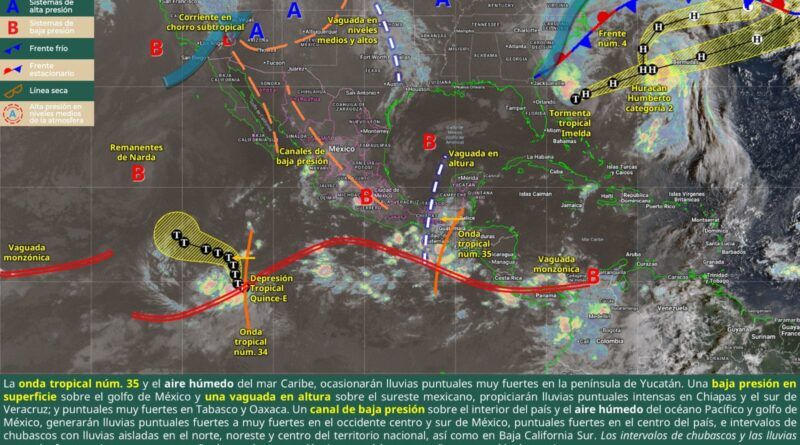 De acuerdo con el pronóstico del tiempo emitido por la Comisión Nacional del Agua (Conagua), se mantendrá durante este día la inestabilidad atmosférica en la mayor parte del territorio oaxaqueño, bajo la influencia de la Onda Tropical número 35, una baja presión en el golfo de México y la proximidad de la vaguada monzónica.