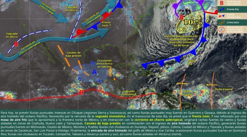 La Coordinación Estatal de Protección Civil y Gestión de Riesgos (CEPCyGR) informa que persistirán las lluvias moderadas a ocasionalmente fuertes en la Costa, Istmo de Tehuantepec, Sierra Sur y algunos sectores de la Mixteca.