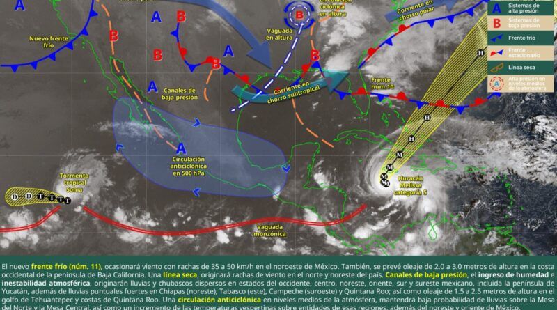 Por otro lado, se monitorea un nuevo frente frío que podría afectar a la entidad con un marcado descenso en la temperatura a partir de la tarde del miércoles 29 de octubre.