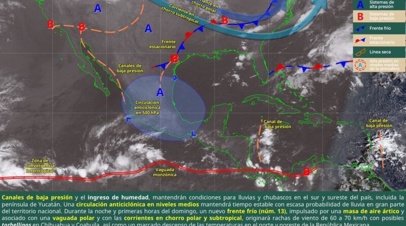 - Los vientos del norte serán de intensidad moderada, por lo que se percibirá sensación térmica de frío en Valles Centrales y Sierra de Flores Magón; y fresca en la Cuenca del Papaloapan