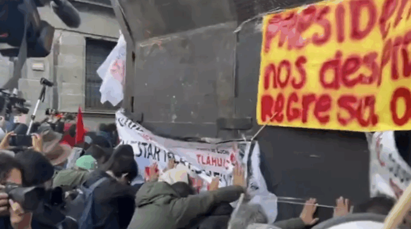 La CNTE empujan vallas en Palacio Nacional y les responden con polvo de extintores