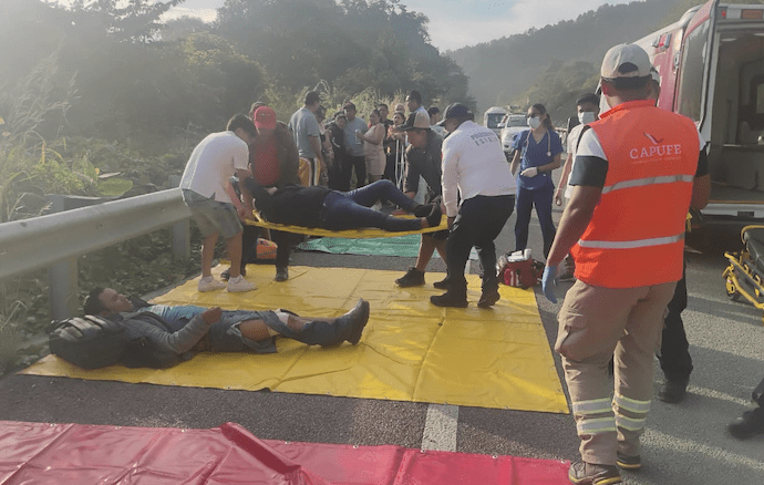 Elementos de seguridad estatal y federal, coordinados con personal de auxilio de Caminos y Puentes Federales de Ingreso y Servicios Conexos (Capufe), organizan el traslado de las personas lesionadas a los hospitales de la zona, así como, implementan un operativo vial para el resguardo de las y los automovilistas que transitan esa carretera federal.