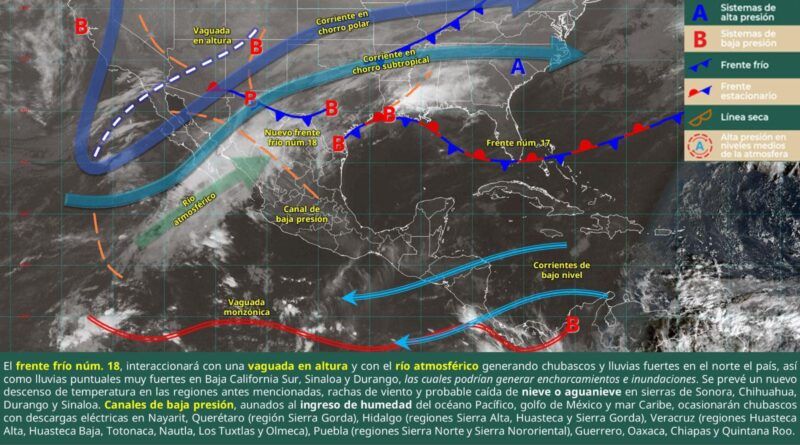 Por otra parte se mantiene en vigilancia la posible llegada de un nuevo frente frío a inicios de la próxima semana, el cual aún se encuentra en proceso de formación (frontogénesis).