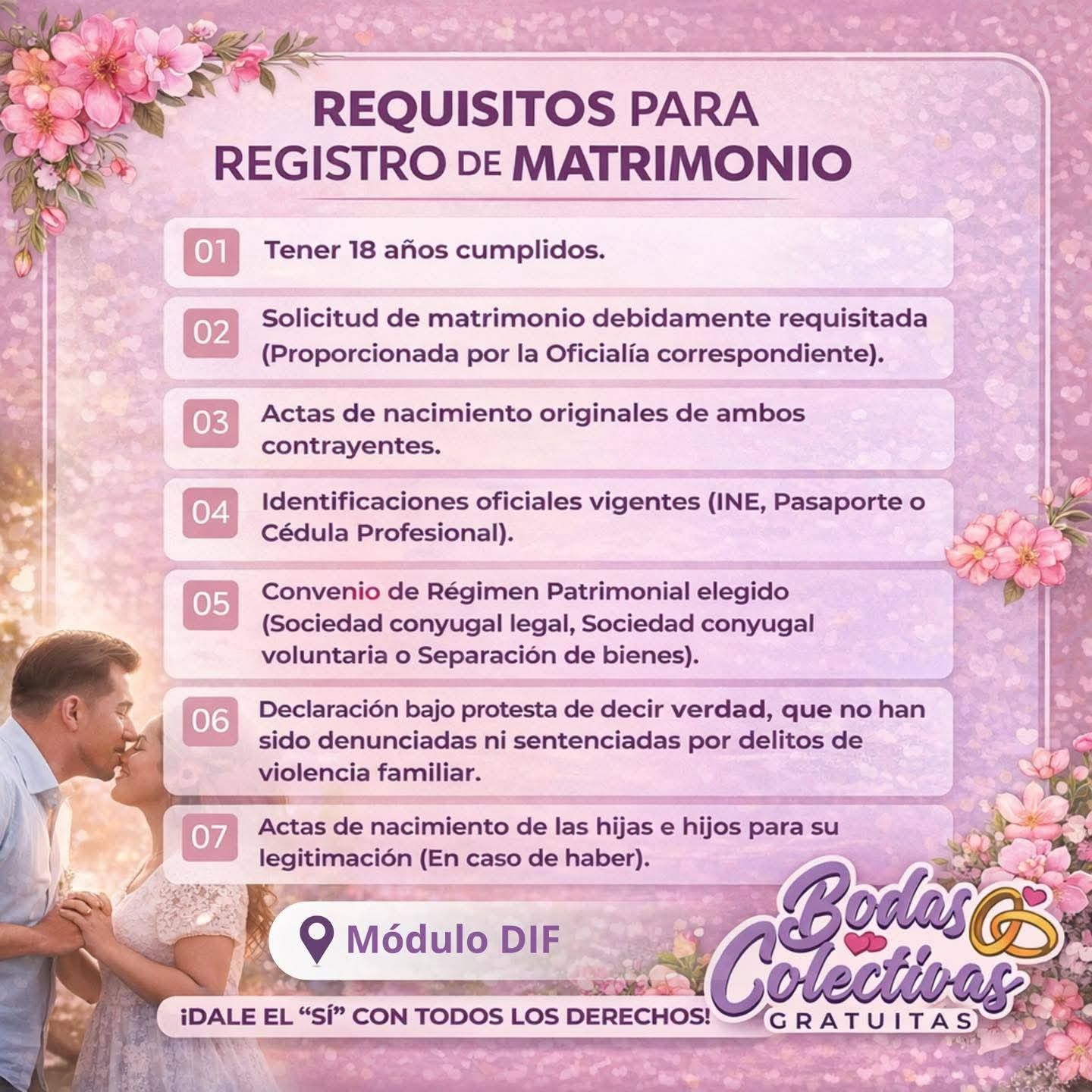 Si ya decidieron caminar juntos, hoy tienen la oportunidad de hacerlo con certeza jurídica y acompañamiento institucional a través de las Bodas Colectivas Gratuitas.