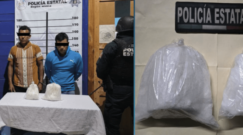 Oaxaca de Juárez, Oax. 3 de febrero de 2026.- Elementos de la Policía Estatal detuvieron a dos masculinos por su presunta responsabilidad en la comisión de delitos contra la salud; sobre la carretera federal 125, en inmediaciones de Putla Villa de Guerrero.