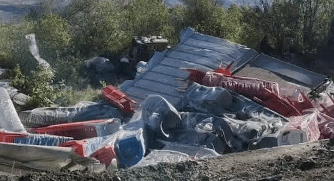 Un tráiler cargado con sillas de plástico cayó a un barranco en las Cumbres de Maltrata, la mañana de este viernes.