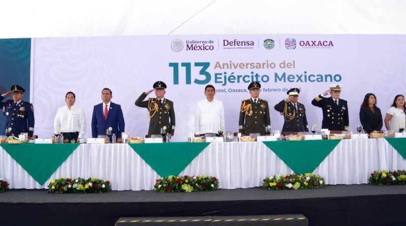 En este marco solemne realizado en la 28 Zona Militar, el Mandatario oaxaqueño resaltó el trabajo permanente de esta institución al servicio de la patria, con un despliegue en el país de más de 150 mil mujeres y hombres, que en conjunto defienden la soberanía de la nación.