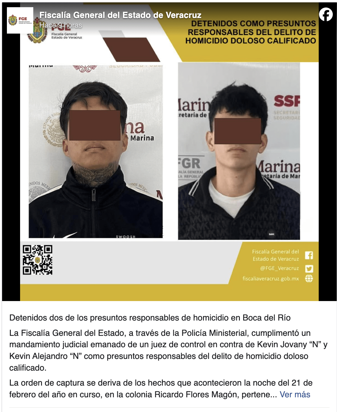 A través de un comunicado, la dependendencia estatal detalló que la agentes de Policía Ministerial cumplimentaron un mandamiento judicial emanado de un juez de control en contra de Kevin Jovany “N” y Kevin Alejandro “N” como presuntos responsables del delito de homicidio doloso calificado.