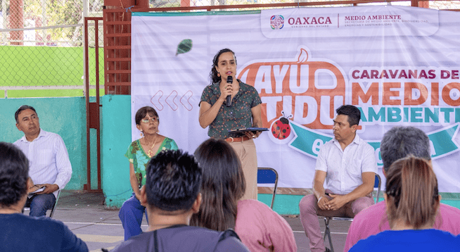 Oaxaca de Juárez, Oax. 10 de marzo de 2026.- Con el objetivo de acercar información y establecer compromisos comunitarios que contribuyan al cuidado del entorno, la Secretaría de Medio Ambiente, Biodiversidad, Energías y Sostenibilidad realizó la Caravana del Medio Ambiente “Layú stidu” en tu Colonia en la agencia municipal San Juan Chapultepec, en la ciudad capital.