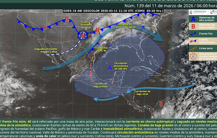 Lo anterior se debe a la presencia de un canal de baja presión ubicado sobre el interior del país, en combinación con la entrada de humedad proveniente del océano Pacífico y Golfo de México.