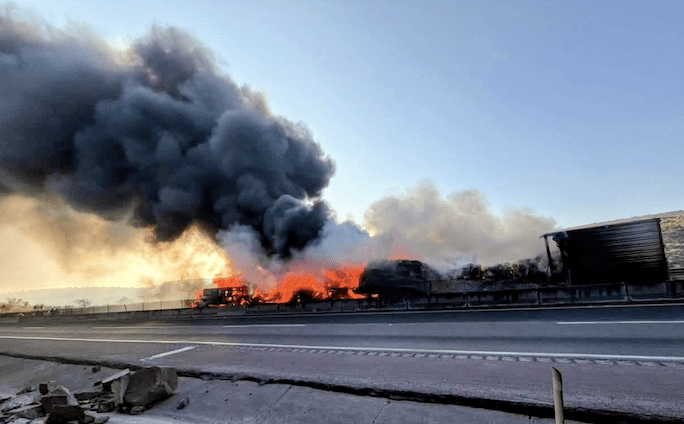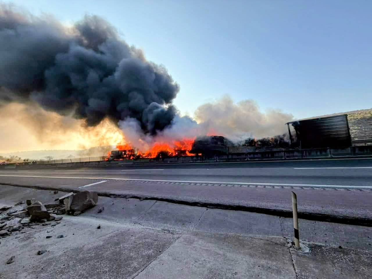 Se registró un incendio de al menos tres vehículos sobre la autopista Arco Norte, a la altura de Xochitlán de las Flores, en el municipio de Tula de Allende, Hidalgo, en el tramo con dirección hacia el estado de Puebla.