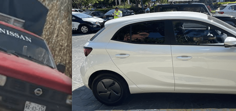 Posteriormente, elementos de la corporación estatal localizó un automóvil marca MG tipo MG3, color blanco, con placas de circulación RV6198C del estado, modelo 2025 y número de serie LSJWP4V62SZ129401, el cual se encontraba estacionado sobre la calle Gardenia, en La Crucecita, Santa María Huatulco.