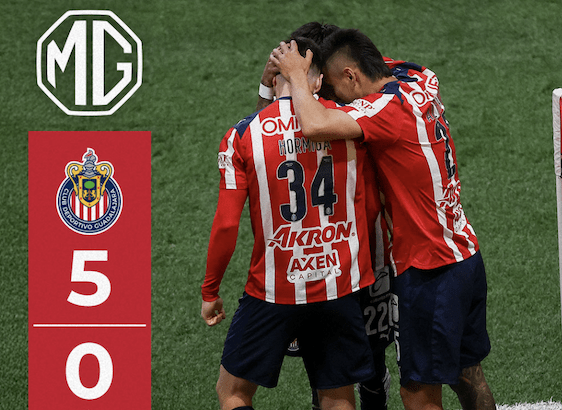Chivas goleó 5-0 a León en el Estadio Akron, en duelo aplazado correspondiente a la jornada 9 del Clausura 2026 de la Liga MX.