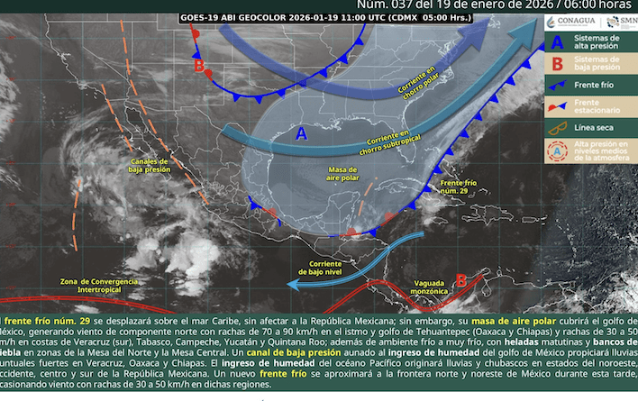 Read MorePara hoy, el frente frío núm. 37 se extenderá sobre el Mar Caribe y el sur de la península de